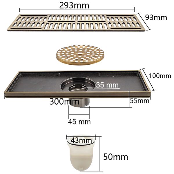Трап для душа с вертикальным выпуском Gappo G83001-4, размер 10 * 30 см, цвет бронза, изготовлен трап из нержавеющей стали.