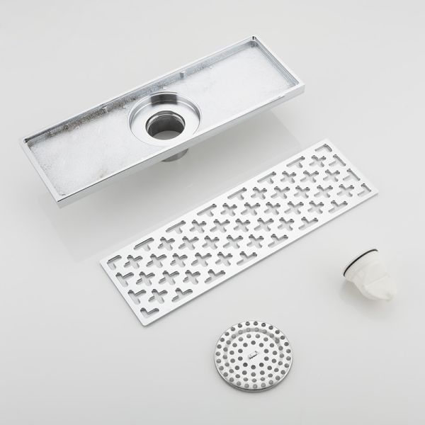 Прямоугольный трап для душа с вертикальным выпуском Gappo G83050, размер 10 * 30 см, цвет хром, изготовлен трап из нержавеющей стали.