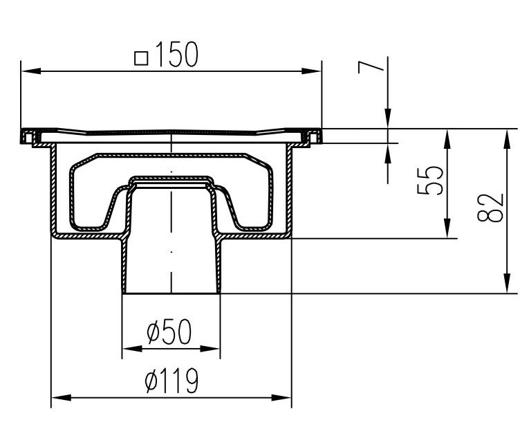 Компактный размер трапа – всего 150х150 мм, что позволяет оставить целостным дизайн пола.