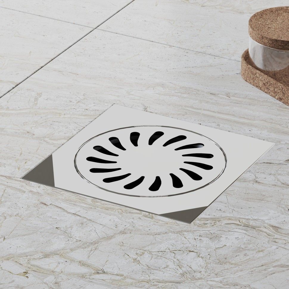 Душевой трап с рисунком на решетке SUN PAINI позволяет создать безбарьерную среду в санузле. Горизонтальный выпуск позволяет осуществить установку в стяжку от 82 мм. Размер трапа – всего 150х150 мм.Высокая пропускная способность