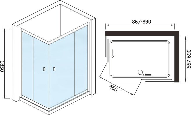 Душевой угол weltwasser СЕРИЯ WW200 Арт. 200QS22-9070 Размер 900х700х1850 мм