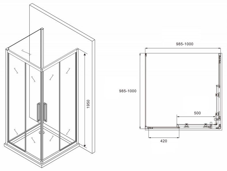 Душевой уголок ABBER Schwarzer Diamant 100x100см AG02100BH-S100B