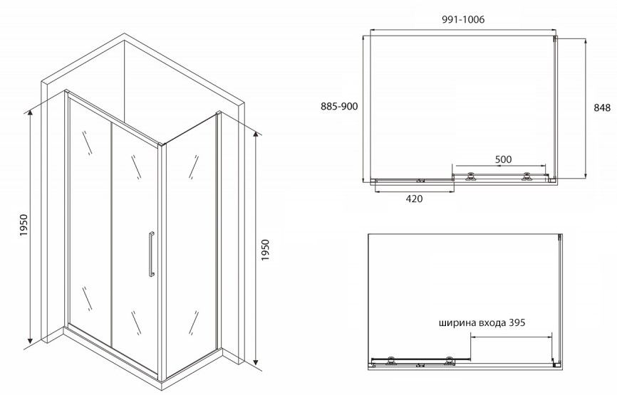 Душевой уголок ABBER Schwarzer Diamant 100x90см AG30100BH-S90B купить