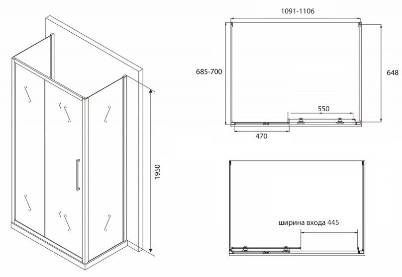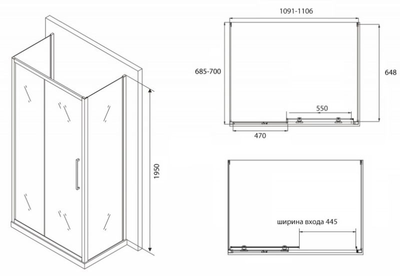 Душевой уголок ABBER Schwarzer Diamant 110x70см AG30110BH-S70B-S70B