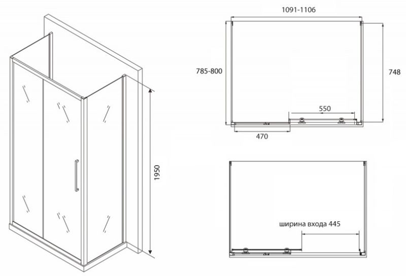 Душевой уголок ABBER Schwarzer Diamant 110x80см AG30110BH-S80B-S80B