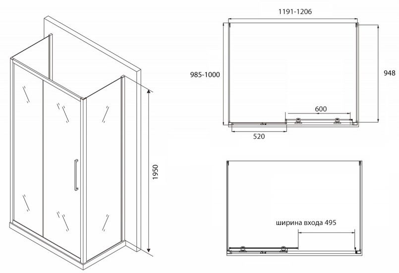 Душевой уголок ABBER Schwarzer Diamant 120x100см AG30120BH-S100B-S100B