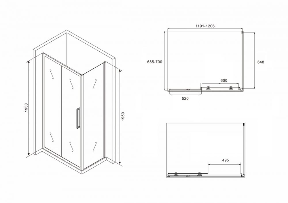 - Габариты с регулировками: (1191-1206)х(685-700) мм