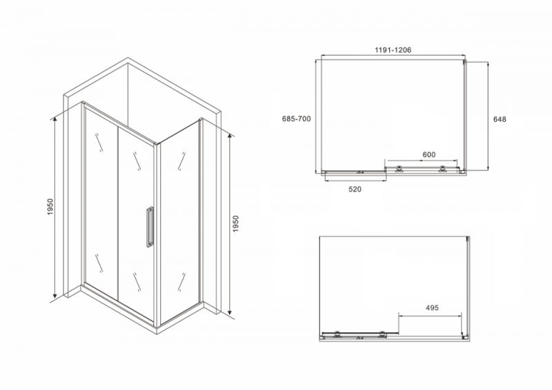 - Ширина входа: 495 мм