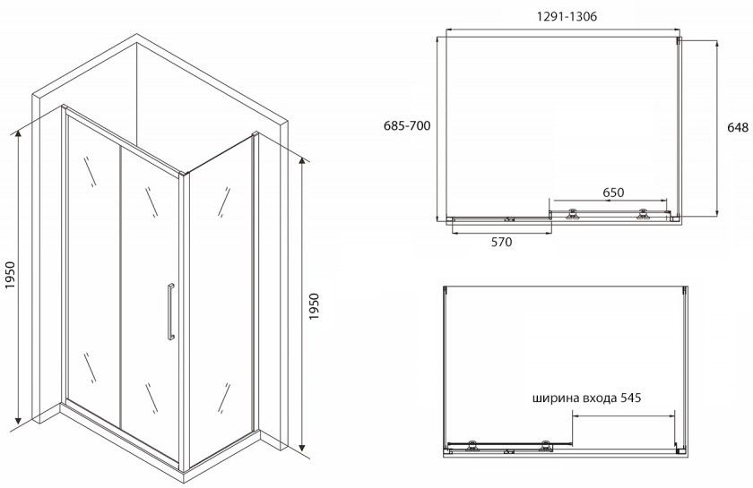 Душевой уголок ABBER Schwarzer Diamant 130x70см AG30130BH-S70B