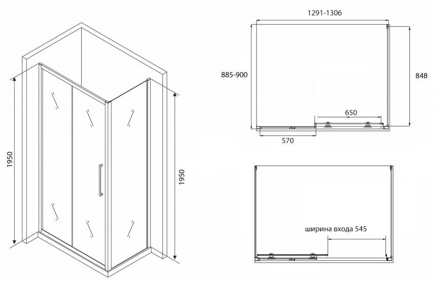 Душевой уголок ABBER Schwarzer Diamant 130x90см AG30130BH-S90B