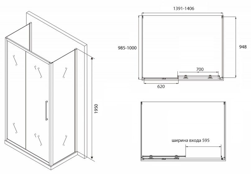 Душевой уголок ABBER Schwarzer Diamant 140x100см AG30140BH-S100B-S100B