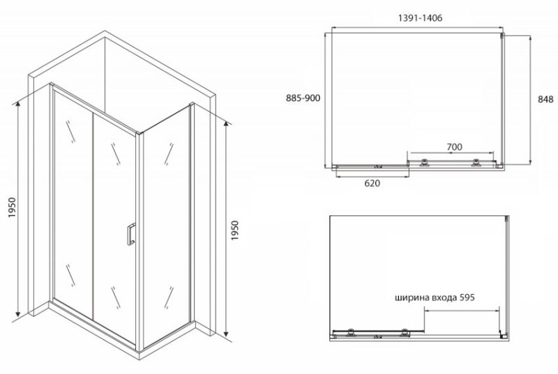 Душевой уголок ABBER Schwarzer Diamant 140x90см AG30140B-S90B