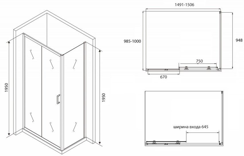 Душевой уголок ABBER Schwarzer Diamant 150x100см AG30150B-S100B купить