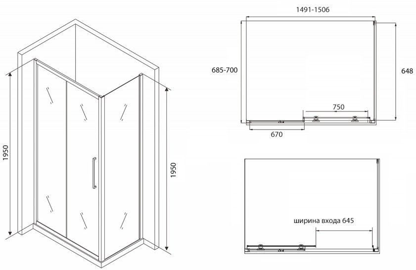 Душевой уголок ABBER Schwarzer Diamant 150x70см AG30150BH-S70B