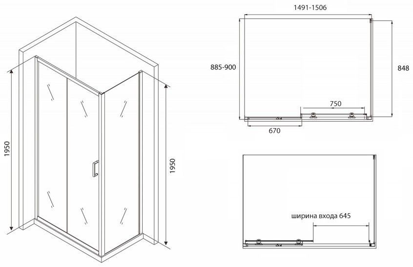 Душевой уголок ABBER Schwarzer Diamant 150x90см AG30150B-S90B купить