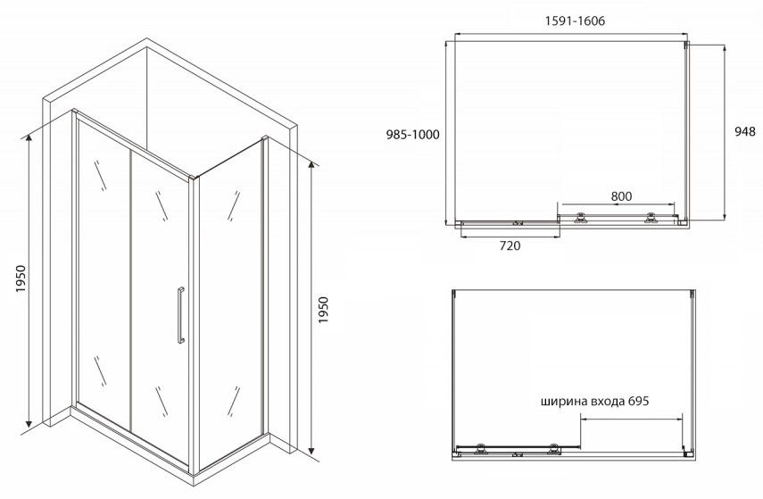 Душевой уголок ABBER Schwarzer Diamant 160x100см AG30160BH-S100B-S100B