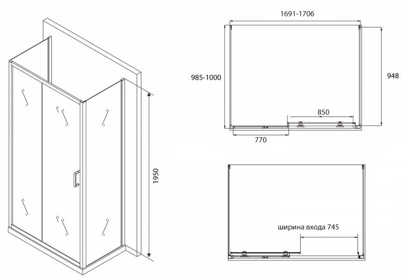 Душевой уголок ABBER Schwarzer Diamant 170x100см AG30170B-S100B-S100B