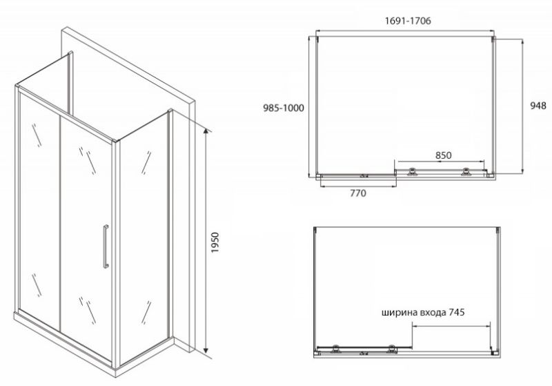 Душевой уголок ABBER Schwarzer Diamant 170x100см AG30170BH-S100B-S100B