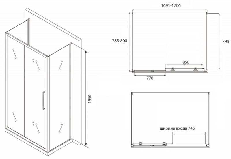 Душевой уголок ABBER Schwarzer Diamant 170x80см AG30170BH-S80B-S80B