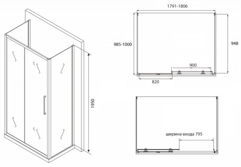 Душевой уголок ABBER Schwarzer Diamant 180x100см AG30180BH-S100B-S100B