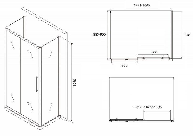 Душевой уголок ABBER Schwarzer Diamant 180x90см AG30180BH-S90B-S90B