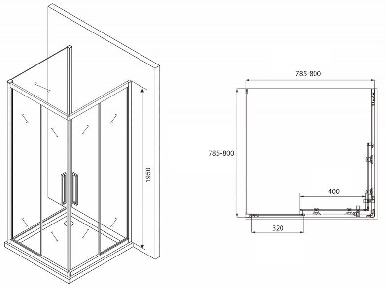 Душевой уголок ABBER Schwarzer Diamant 80x80см AG02080BH-S80B