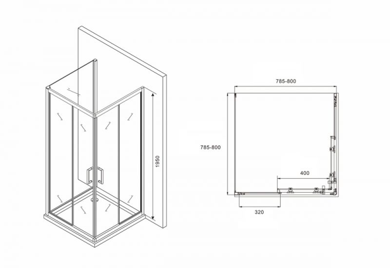 Бренд Abber – это непревзойденное качество и долговечность, так как производство полностью соответствует стандартам качества.Квадратный П-образный душевой уголок, пристенная установкаДвери: две раздвижные