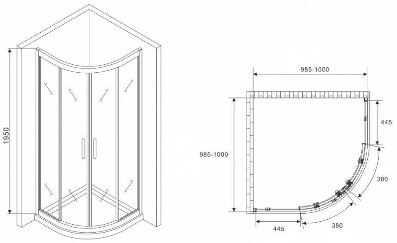 Душевой уголок ABBER Schwarzer Diamant AG01100M 100x100см хром