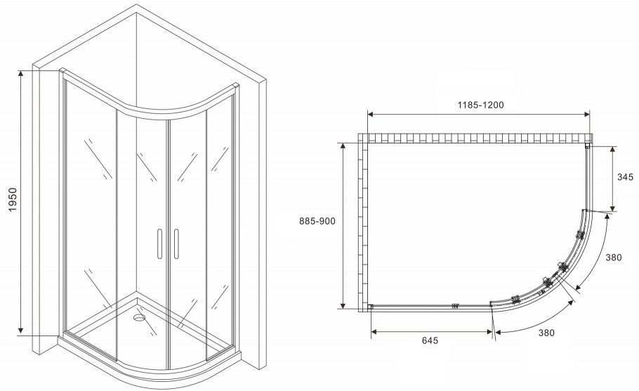 Душевой уголок ABBER Schwarzer Diamant AG01129M 120x90см хром