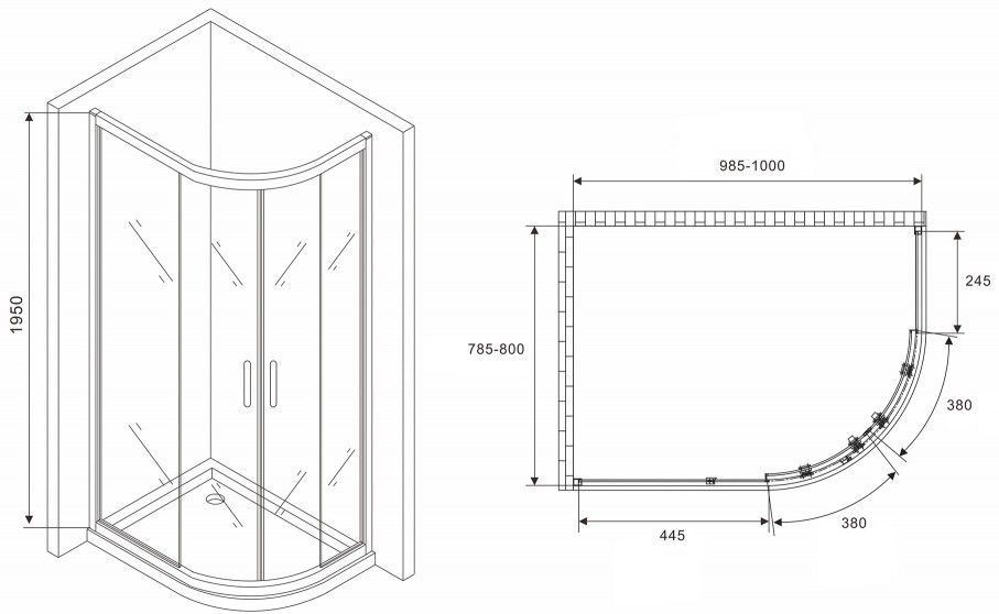 Душевой уголок ABBER Schwarzer Diamant AG01180 100x80см хром