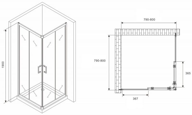 Душевой уголок ABBER Schwarzer Diamant AG020805 80x80см хром