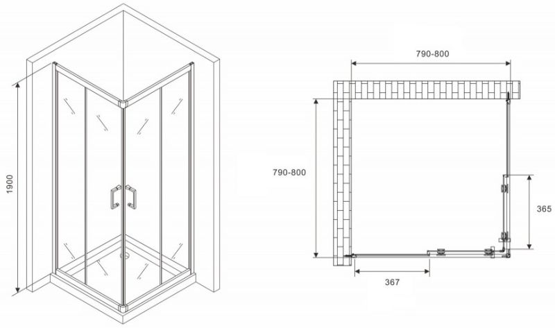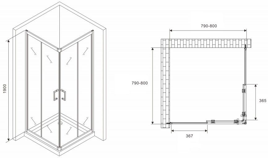 Душевой уголок ABBER Schwarzer Diamant AG02080B5 80x80см чёрный