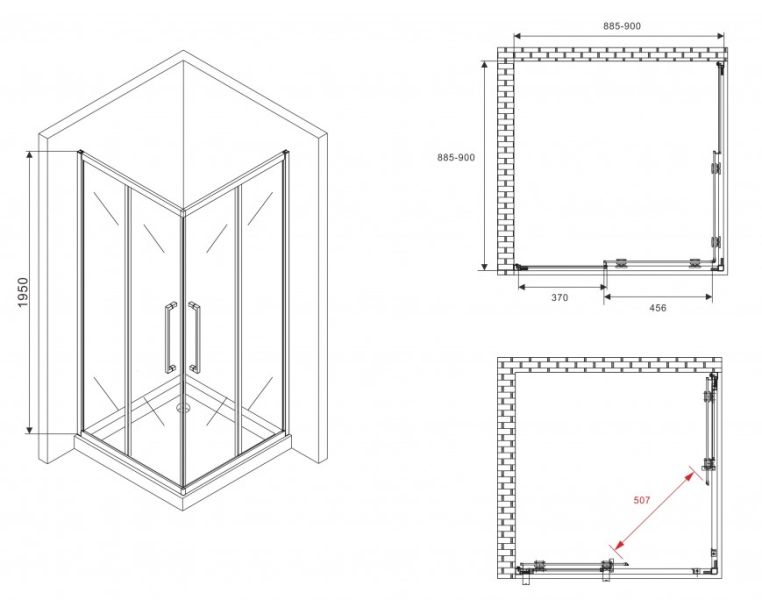 Душевой уголок ABBER Schwarzer Diamant AG02090BDTH 90x90см чёрный