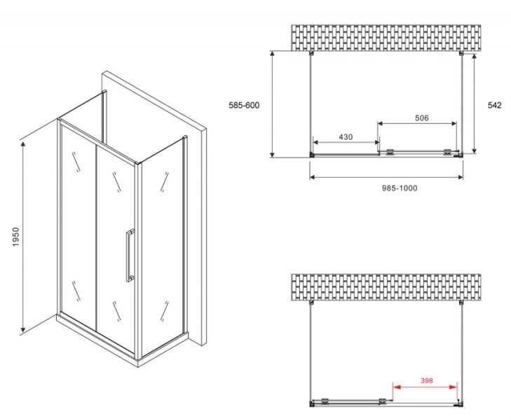 Душевой уголок ABBER Schwarzer Diamant AG30100H-S60-S60 100x60см хром