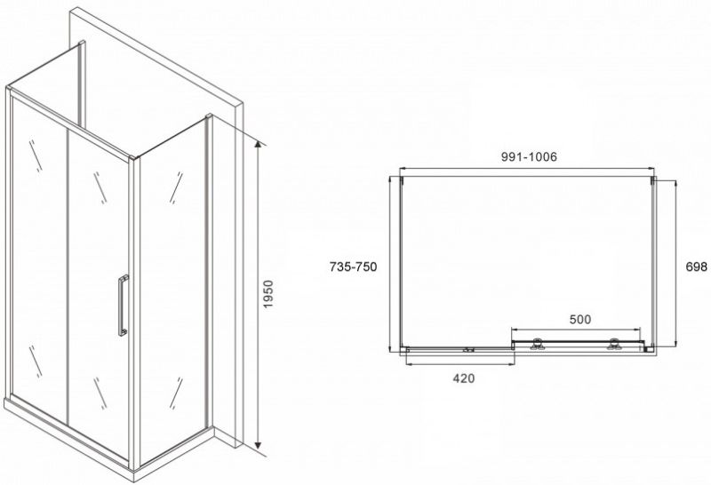 Душевой уголок ABBER Schwarzer Diamant AG30100H-S75-S75 100x75см хром