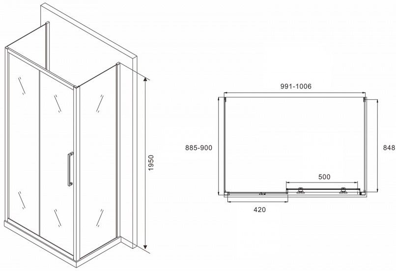 Душевой уголок ABBER Schwarzer Diamant AG30100H-S90-S90 100x90см хром