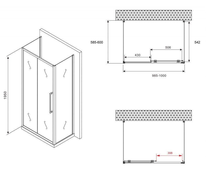 Душевой уголок ABBER Schwarzer Diamant AG30100MH-S60M-S60M 100x60см хром