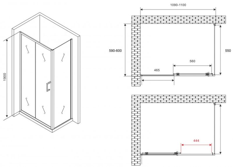 Душевой уголок ABBER Schwarzer Diamant AG301105-S605 110x60см хром