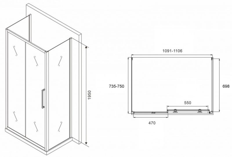 Душевой уголок ABBER Schwarzer Diamant AG30110BH-S75B-S75B 110x75см чёрный