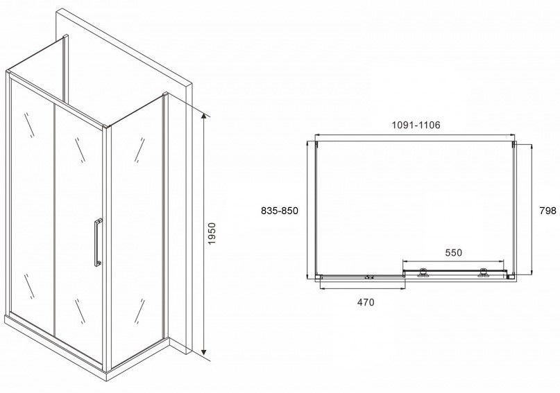 Душевой уголок ABBER Schwarzer Diamant AG30110MH-S85M-S85M 110x85см хром