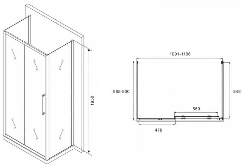 Душевой уголок ABBER Schwarzer Diamant AG30110MH-S90M-S90M 110x90см хром