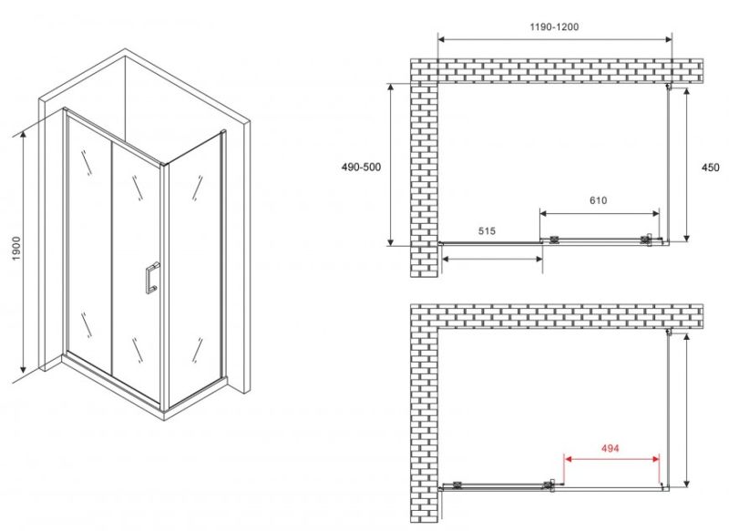 Душевой уголок ABBER Schwarzer Diamant AG301205-S505 120x50см хром