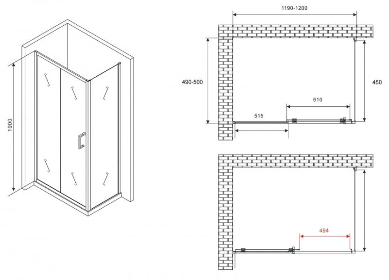 Душевой уголок ABBER Schwarzer Diamant AG30120B5-S50B5 120x50см чёрный