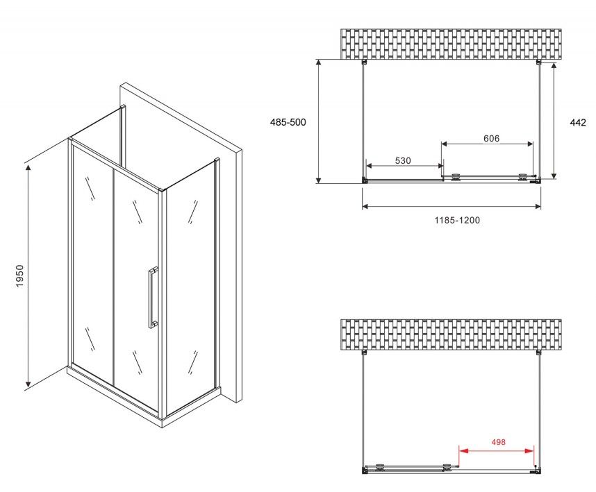 Душевой уголок ABBER Schwarzer Diamant AG30120BH-S50B-S50B 120x50см чёрный