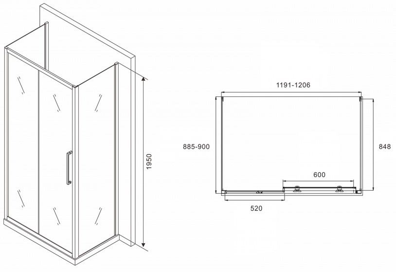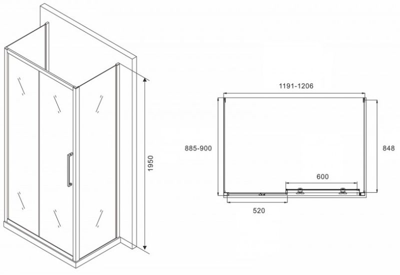 Душевой уголок ABBER Schwarzer Diamant AG30120H-S90-S90 120x90см хром