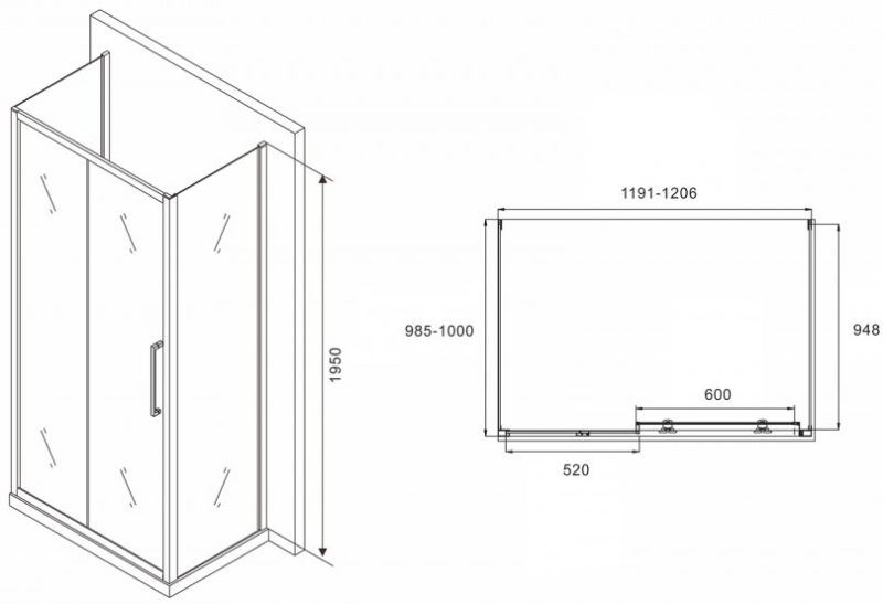 Душевой уголок ABBER Schwarzer Diamant AG30120MH-S100M-S100M 120x100см хром