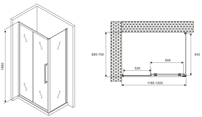 Душевой уголок ABBER Schwarzer Diamant AG30120MH-S70M 120x70см хром