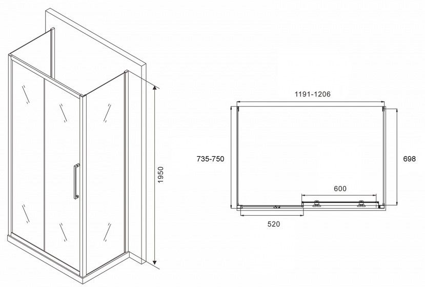 Душевой уголок ABBER Schwarzer Diamant AG30120MH-S75M-S75M 120x75см хром