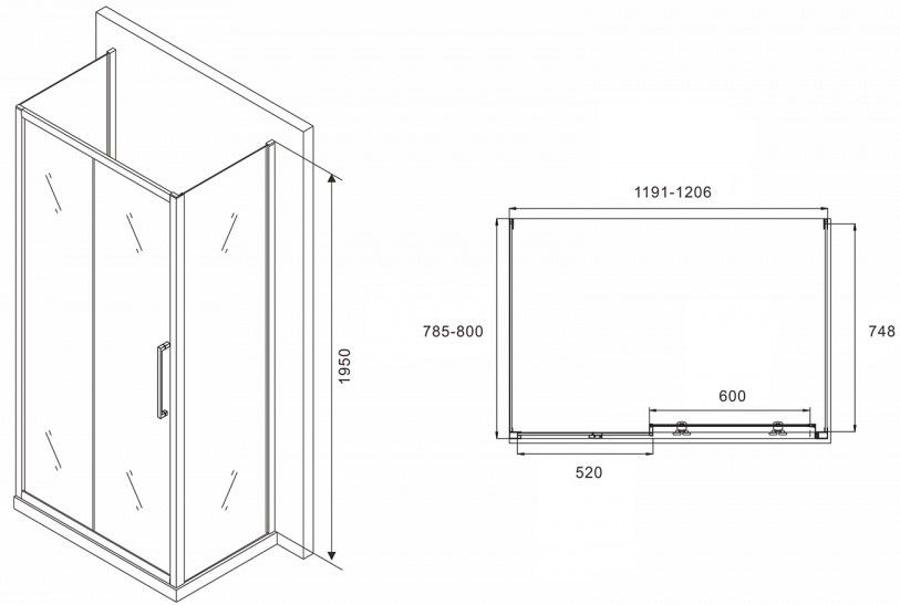 Душевой уголок ABBER Schwarzer Diamant AG30120MH-S80M-S80M 120x80см хром