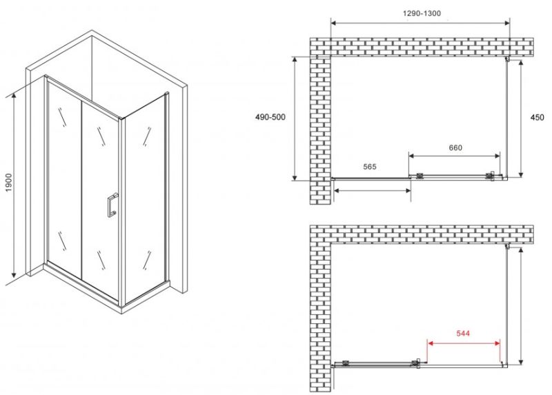 Душевой уголок ABBER Schwarzer Diamant AG301305-S505 130x50см хром